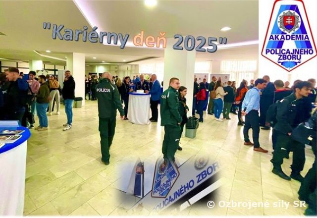 Kariérny deň 2025 Podujatie "Kariérny deň 2025" bolo určené pre študentov končiacich ročníkov bakalárskeho a magisterského štúdia na Akadémii Policajného zboru v Bratislave. Čas vytváral priestor pre prezentáciu útvarov Ministerstva vnútra SR, útvarov Policajného zboru a samozrejme aj našich Ozbrojených síl OS SR plus ďalších bezpečnostných zborov a služieb, ako aj priestranstvo pre osobné stretnutia so študentami končiacich ročníkov v súvislosti s ich ďalším kariérnym uplatnením.